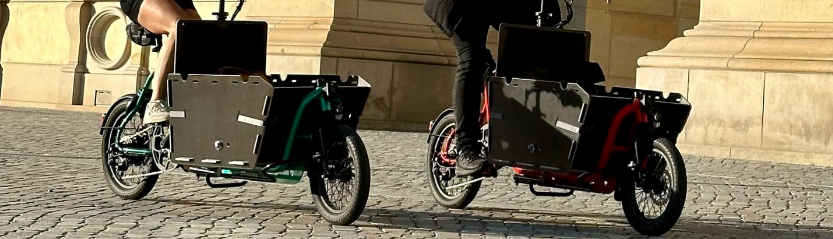 Pneus larges et renforcés pour vélo cargo avec protection anti-crevaison.